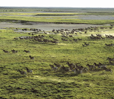 as approximately 30,000 zebra and wildebeest migrate across the Makgadikgadi Pans, followed closely by stalking predators, waiting for the rich pickings of tired hooves. This is a wildlife explosion and an experience not to be missed!