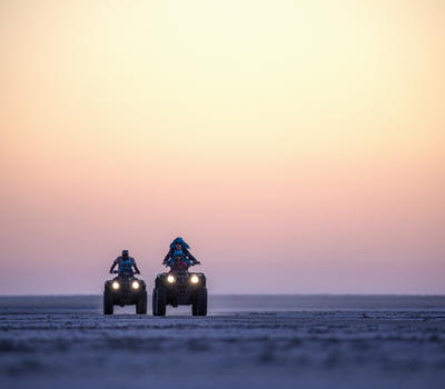 This is pure desert adventure! Take an exhilarating quad bike across the salt-crusted pans (all pan activity is weather permitting and dependent on the dryness of the pans). You’ll feel total freedom as you trek across this vast and ancient landscape, discovering so much about the remnants of this once super lake.
