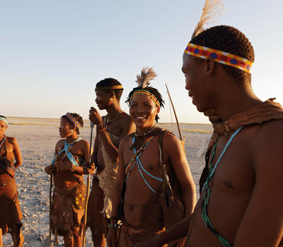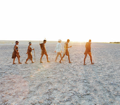Discover the secrets of the pans with the Zu/’hoasi Bushmen on a fascinating bush walk. See this ancient desert landscape through their eyes. These skilled hunter gatherers will show you how to survive, using their extraordinary tracking skills to uncover a smorgasbord of culinary delights... from bulbs, to scorpions, to berries. Spending time with them is a very rare privilege.