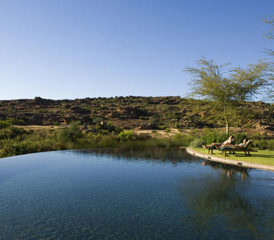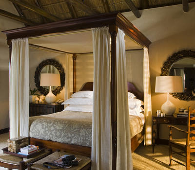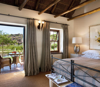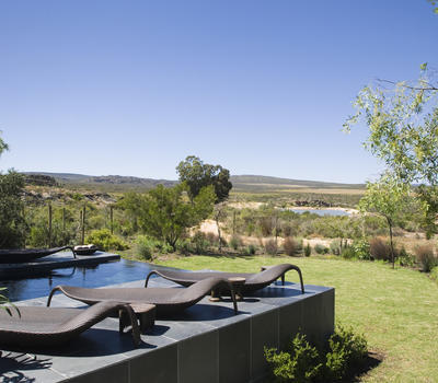 Secluded beside the Boontjies River, the exquisitely decorated Supreme Suite has a separate lounge with fireplace, large terrace, outdoor shower and a private heated plunge pool.