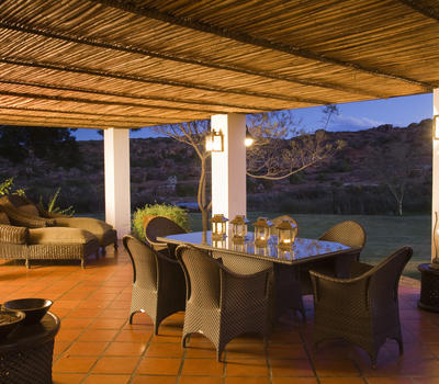 (‘To feast’ in the ancient language of the Bushman), has stone walls enclosing an elegant lounge with twin fireplaces overlooking sweeping lawns and the Boontjies river. The ideal choice for mouth watering high teas, hot cooked breakfasts and outdoor celebration dinners. Complemented by our fine wines, guests have an unequivocal taste celebration of the Cederberg.