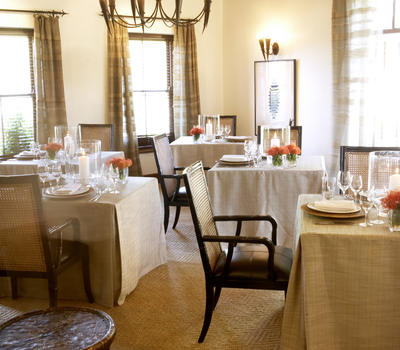 The restaurant adjoins the pool terrace, where high tea is often served. The formal dining room is warm and elegantly furnished, with a full complement of attentive staff to present a selection of specialities offered each evening from the Executive Chef’s table d’hôte menu. Enjoy cocktails in the bar and after dinner drinks beside the fireplace.