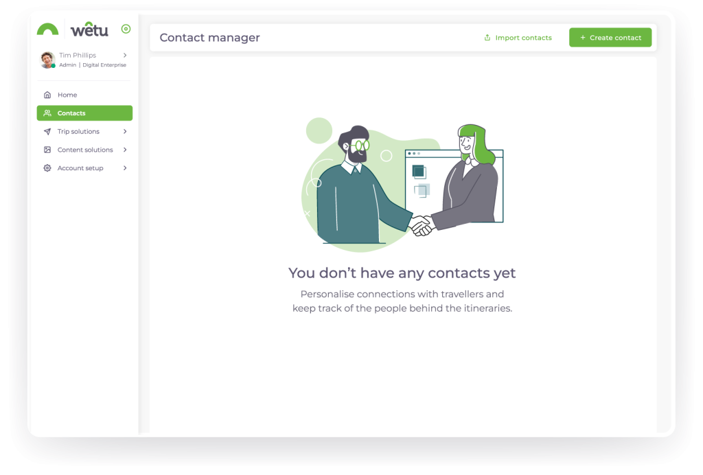 Keep traveller details, notes, and trips together when you build itineraries — all in one workspace. Ensure that your information is accurate, always up to date, and seamlessly linked so you can respond faster, personalise every journey, and spend more time delighting travellers.